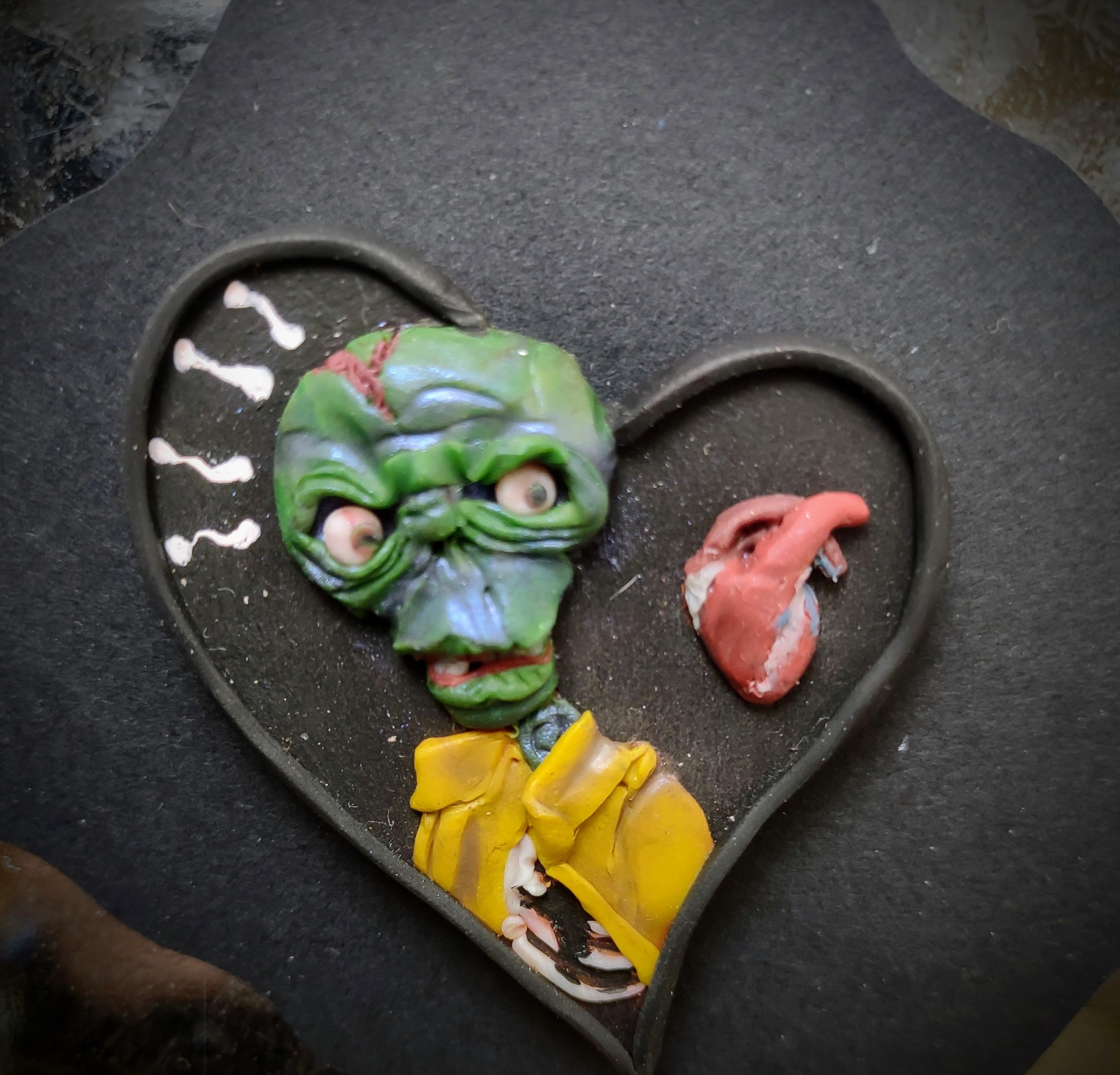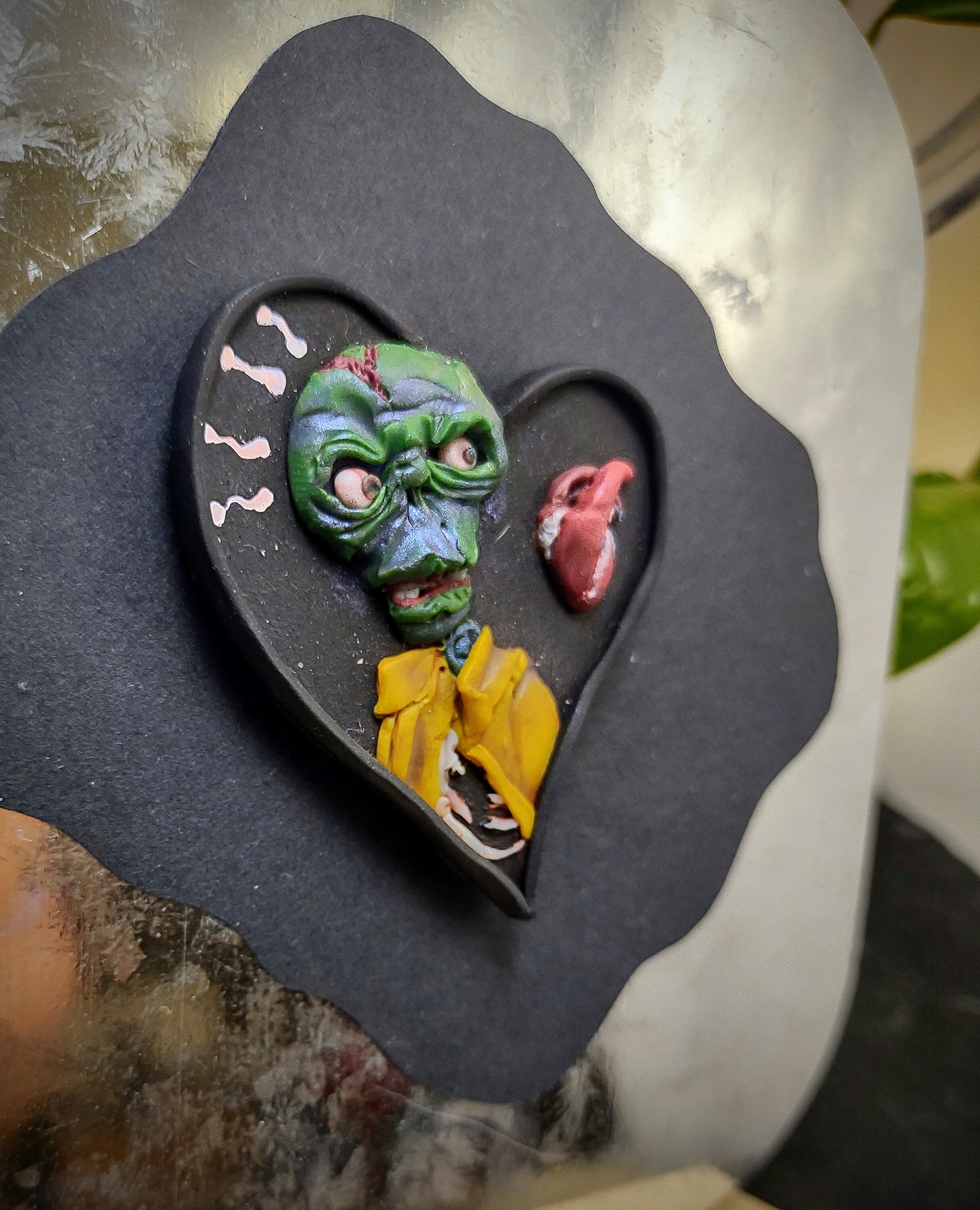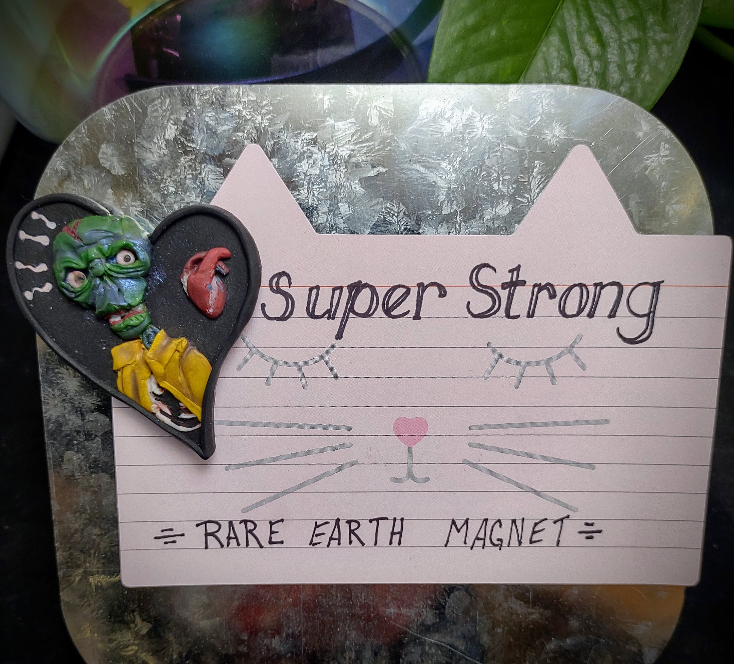 Hand-sculpted art magnet, made from high quality polymer clay over wood and mounted on a strong Rare Earth magnet.